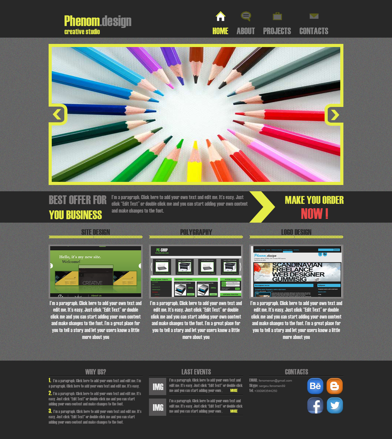 Отличный шаблон в темных тонах, подойдет для сайтов разных тематик.