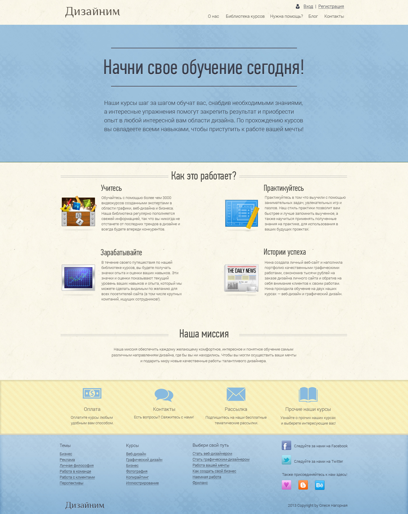 Простой и стильный дизайн. Универсальная композиция позволяет легко переделать шаблон под самые разные тематики. Спокойная цветовая гамма не утомляет глаз и помогает сосредоточиться на восприятии информации. Структура сайта позволяет грамотно расставить акценты и обратить внимание на самое важное.