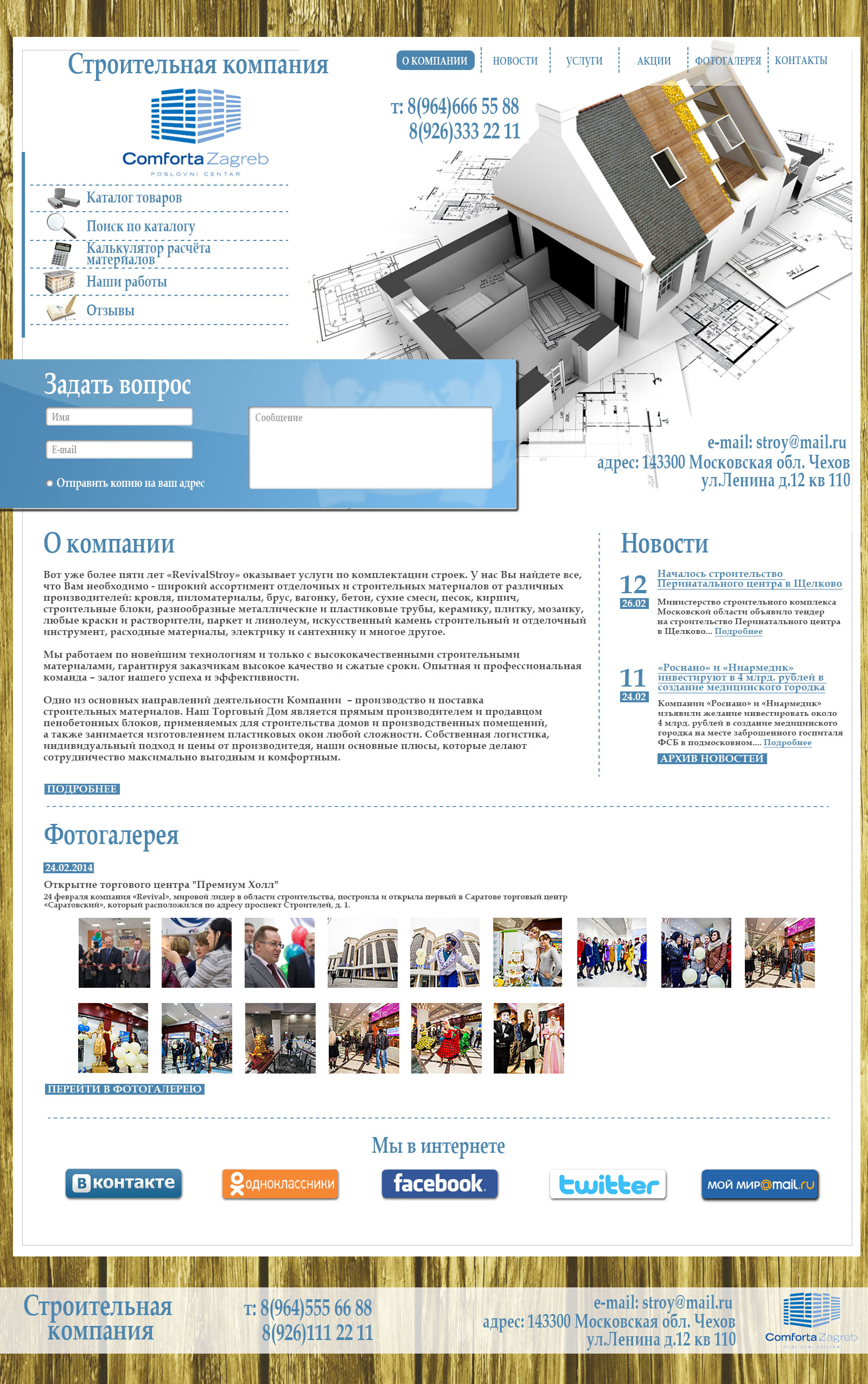 Шаблон строительной компании (PSD), в 2х цветовых гаммах: Голубой и красный.