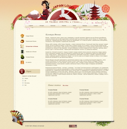 Дизайн на тему японской культуры. Отлично подойдет для сайтов которые описывают путешествия и отдых в восточных странах. Светлый и современный дизайн.