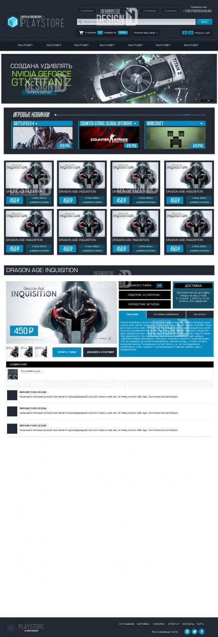 Продам макет интернет-магазина игр. Макет делался на заказ, но планы изменились и теперь он лежит без дела.