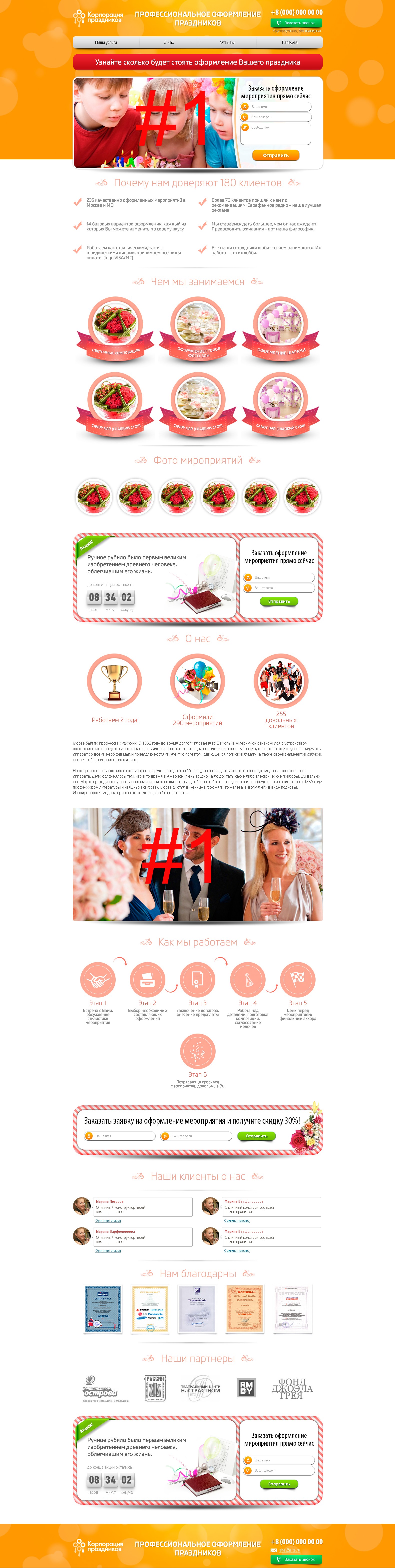 Профессиональное оформление праздников. Качественный лендинг в светлых тонах