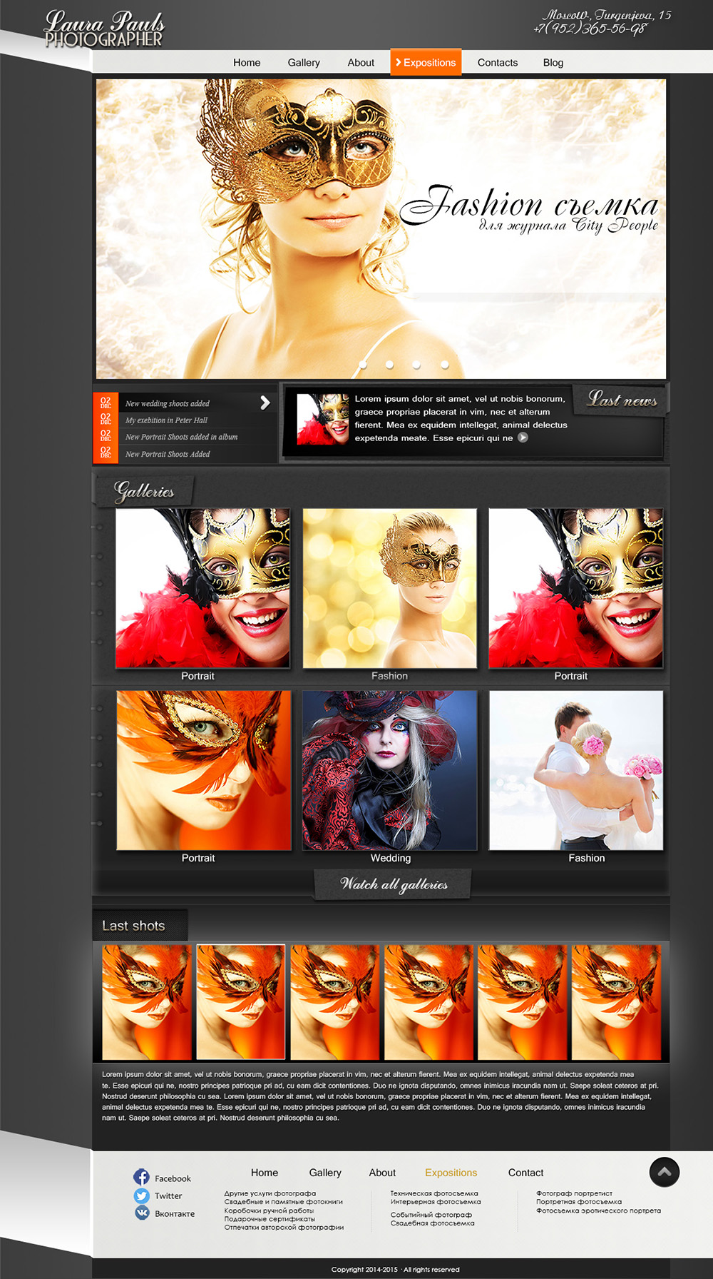 Стильный лаконичный сайт для фотографов и художников в темных тонах.