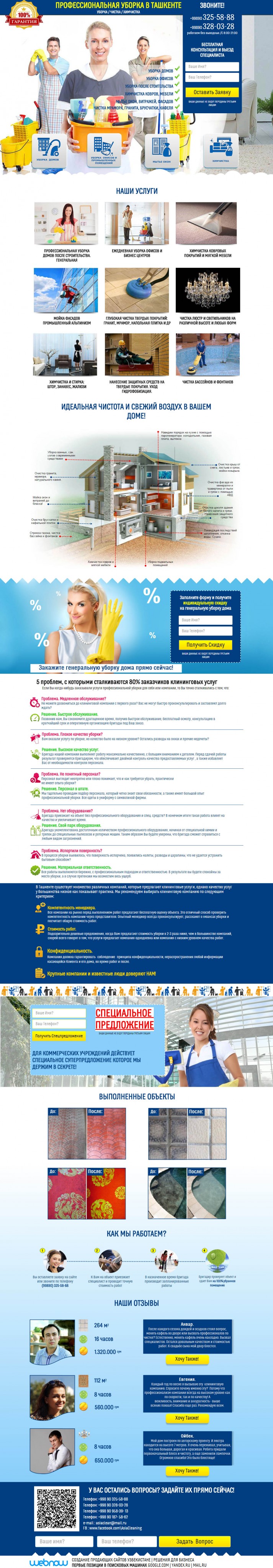 Landing page (Лендинг пейдж) на продажу- это готовый сайт для Вашего бизнеса по реализации услуг в сфере профессиональной уборке помещений. Выполнен в соответствии с новейшими инструментами маркетинга, имеет яркий, привлекательный дизайн и высокую коверсию.