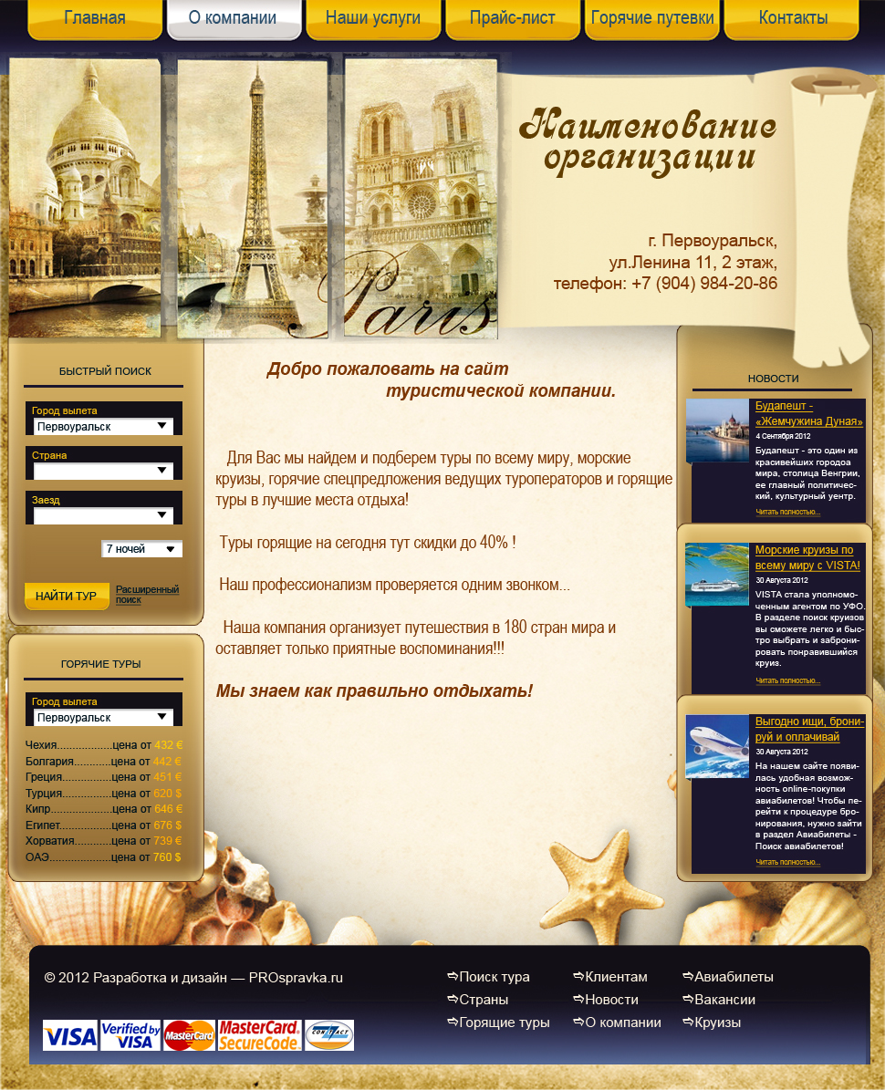 psd-шаблон, туристическая фирма, дома отдыха выполненный в винтажном стиле Парижа.