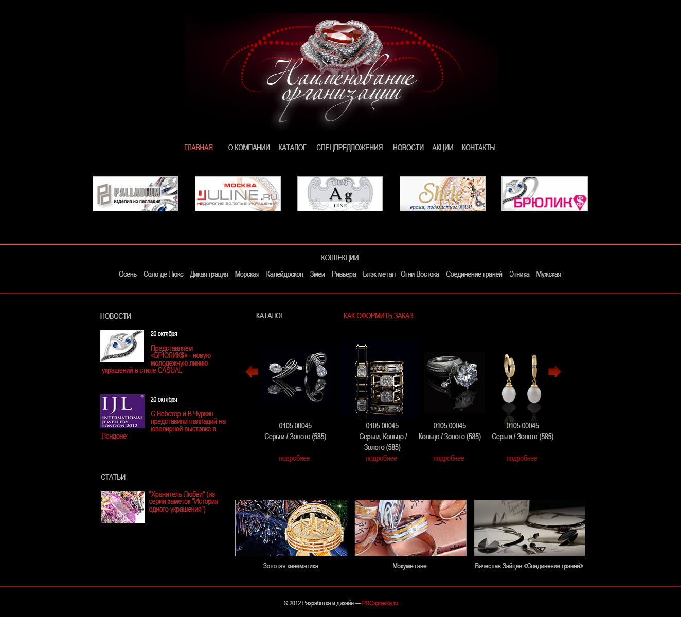 psd-шаблон для магазина ювелирных украшений. Выполнен с ювелирной точностью. Также имеются дополнительно отприсованные страницы просмотра конкретного товара и главная станица когда клиент будет заходить на сайт.