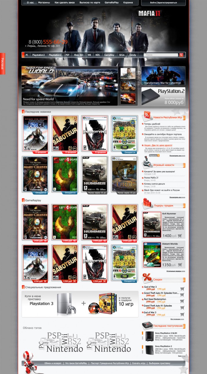 Данный дизайн разрабатывался для магазина по продаже компьютерных игр.