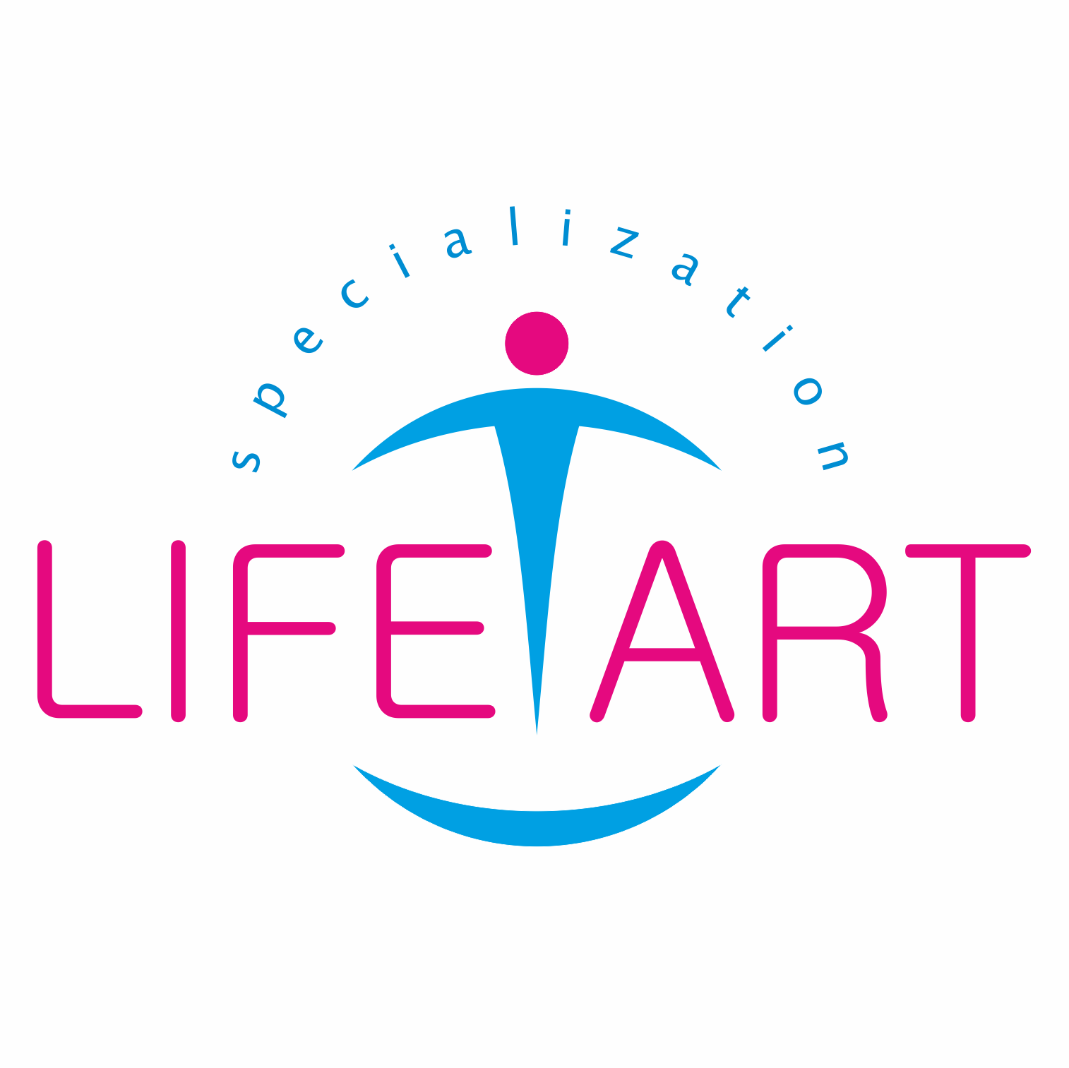 Стилизованный человек выходит за рамки круга, как бы паря над условностями. В то же время, объединяя две части названия компании.