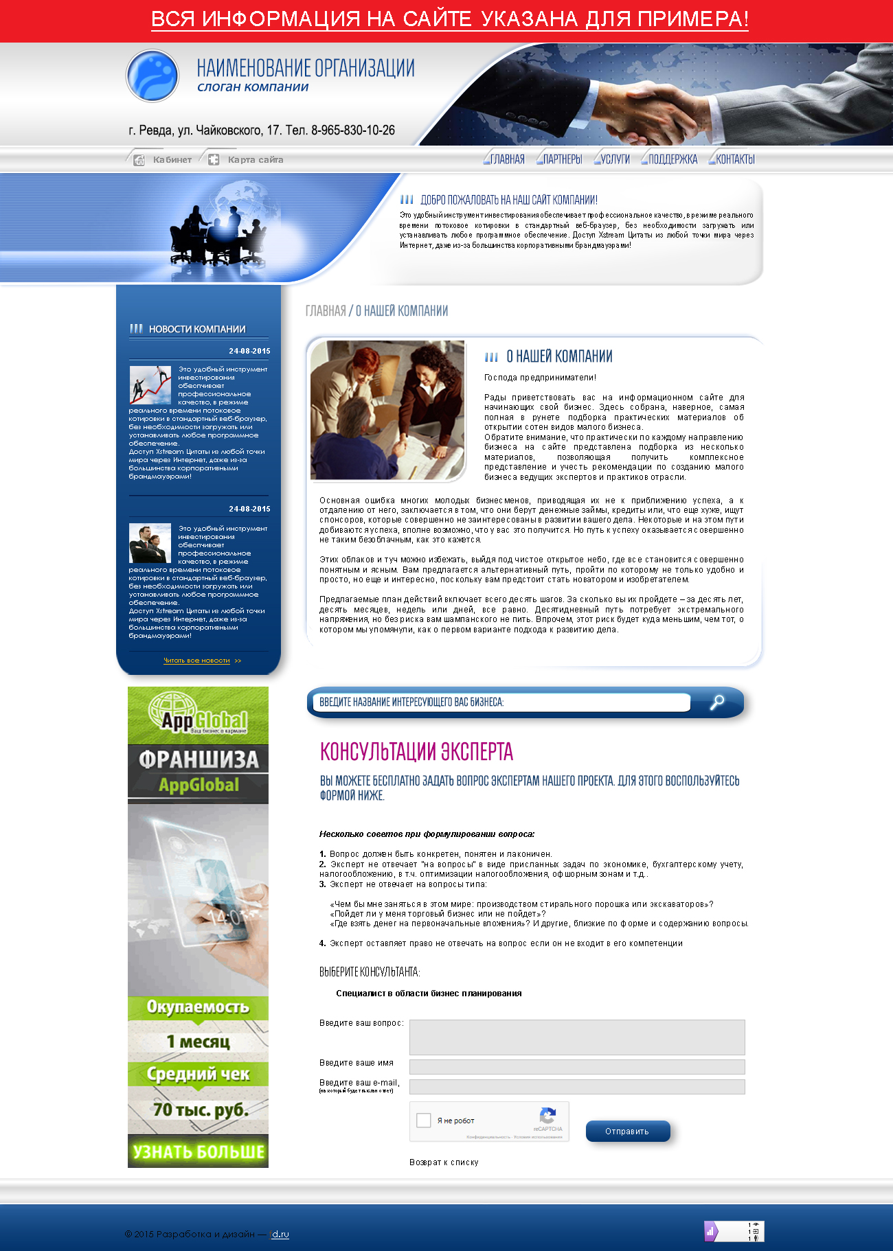 psd шаблон для бизнесменов, предпринимателей, финансовых организации. Подобный дизайн можно назвать нейтральным или унивесальным, подойдет как сайт визитка. Приятный, светлый, чистый дизайн.