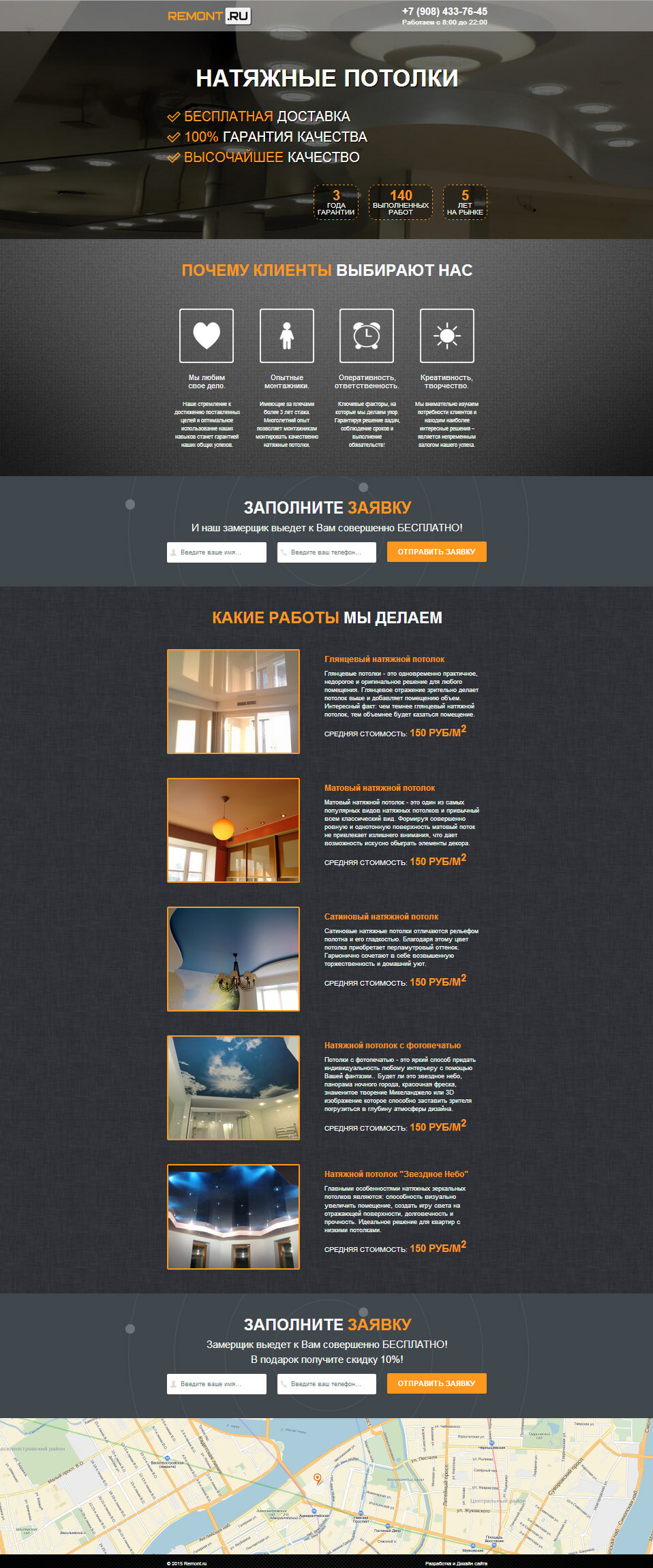 Шаблон сайта "Натяжные потолки" для строительной компании. Лендинг по строительству.