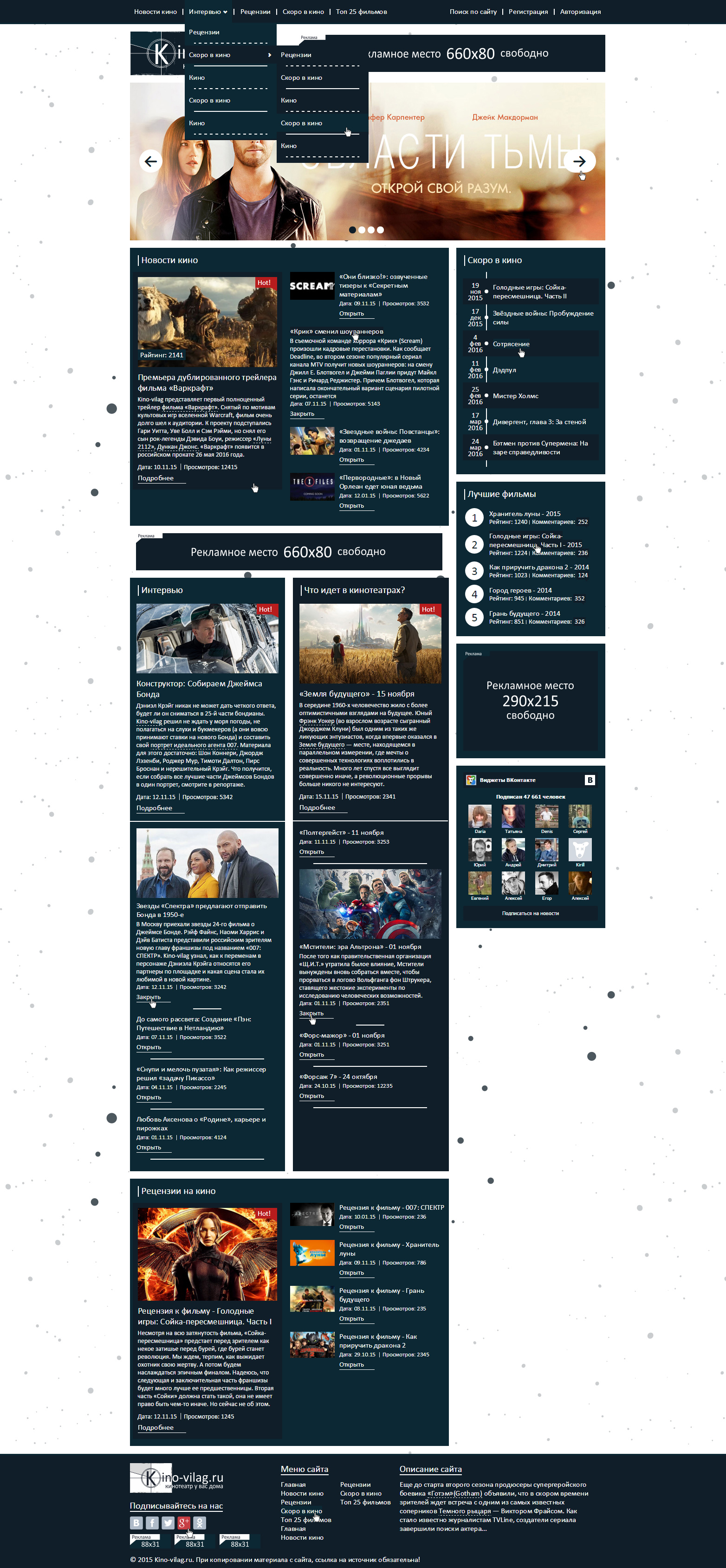 Представлю адаптивный шаблон Kino-vilag на кино тиматику в темных тонах.