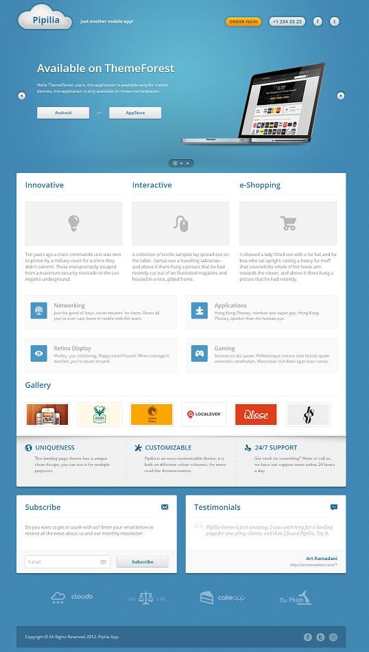 Современный HTML шаблон сайта для вашего приложения в голубых тонах и весьма приятной графикой.
