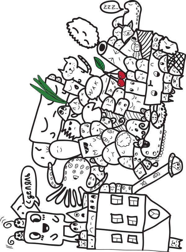 Рисунок в стиле Doodle. Возможно использовать, как фон для чехлов.