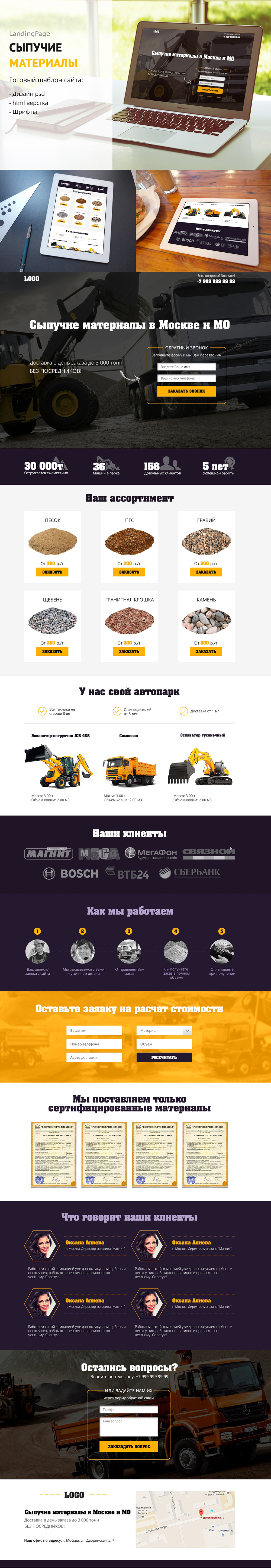 Уникальный дизайн LandingPage "Сыпучие материалы" с высокой конверсией.