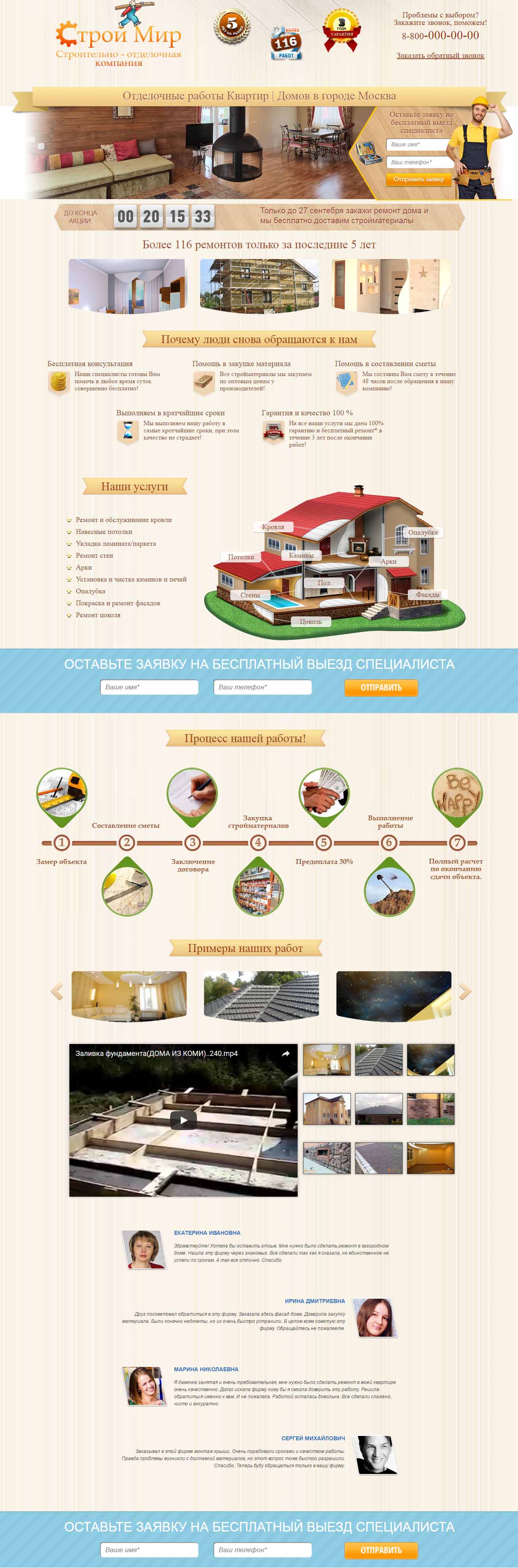 Это готовый сайт для Вашего бизнеса по реализации услуг в сфере: Строительства и ремонта домов, кровли, внутренних помещений. Выполнен в соответствии с новейшими инструментами маркетинга, имеет яркий, привлекательный дизайн и высокую коверсию. Удобное меню, простота и ненавязчивость дизайна моментально притягивает взгляд покупателей.