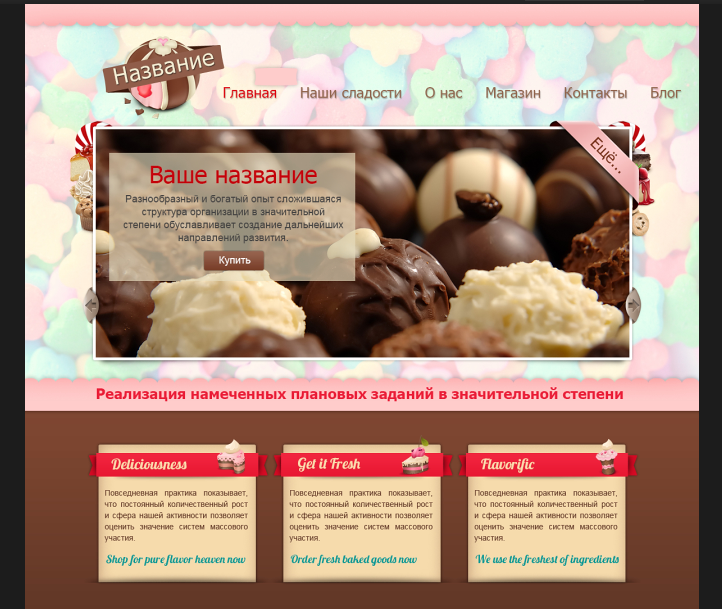 PSD шаблон от rifatofficial на тему сладостей, выполненный в минималистическом режиме. Этот яркий сайт отлично подойдет для магазина сладостей.