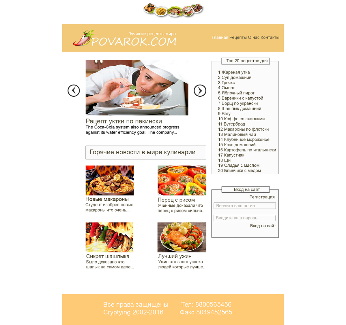 Кулинарый блог, при необходимости могу его переделать под конктретный проект.