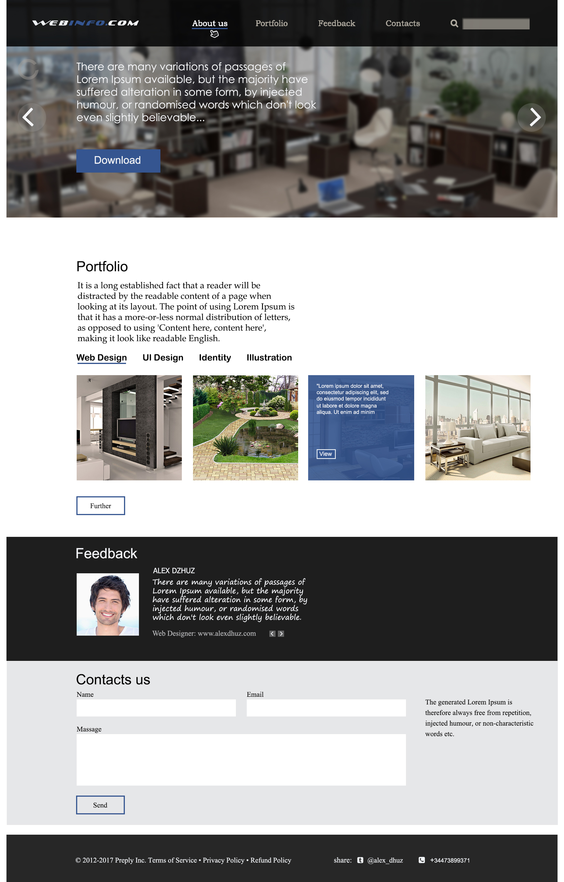 PSD макет для блога о веб дизайне,а так же дизайн интерьера,выполнен в современном стиле со слайдером.