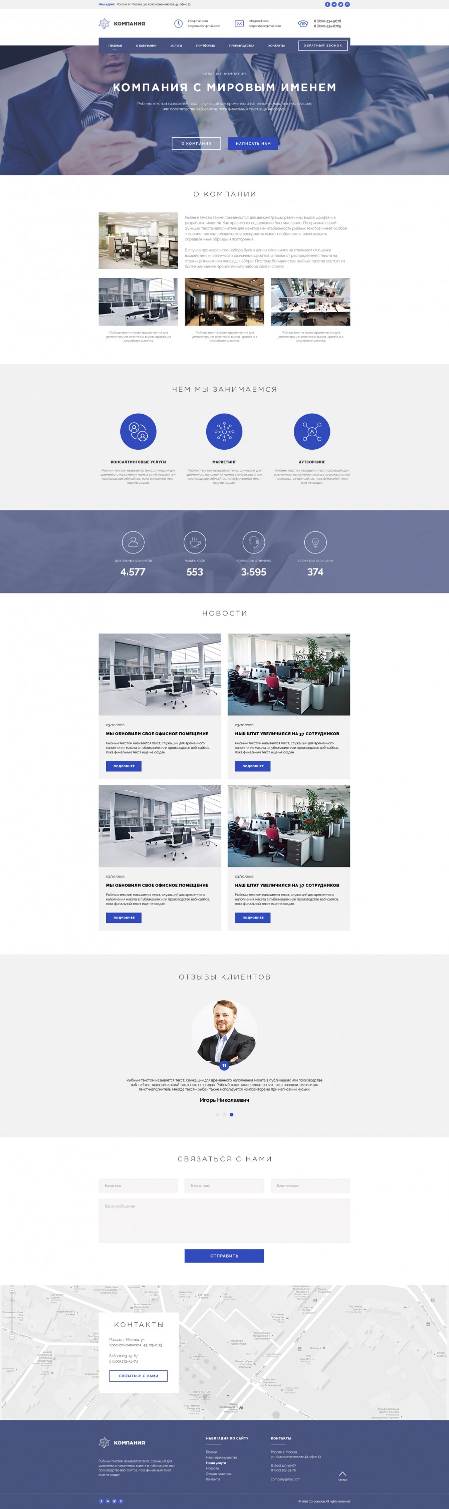 Готовый легкий сайт-визитка для корпораций. Присутствует минимальный функционал для запуска полноценного сайта.