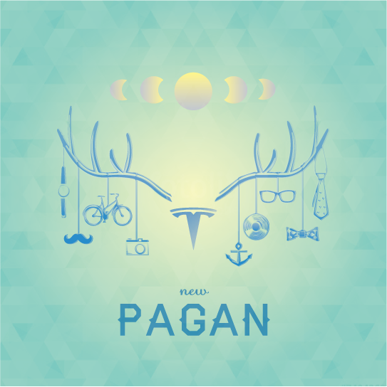 Оригинальный принт на тему субкультуры хипстеров. Перевод текста: новое язычество.