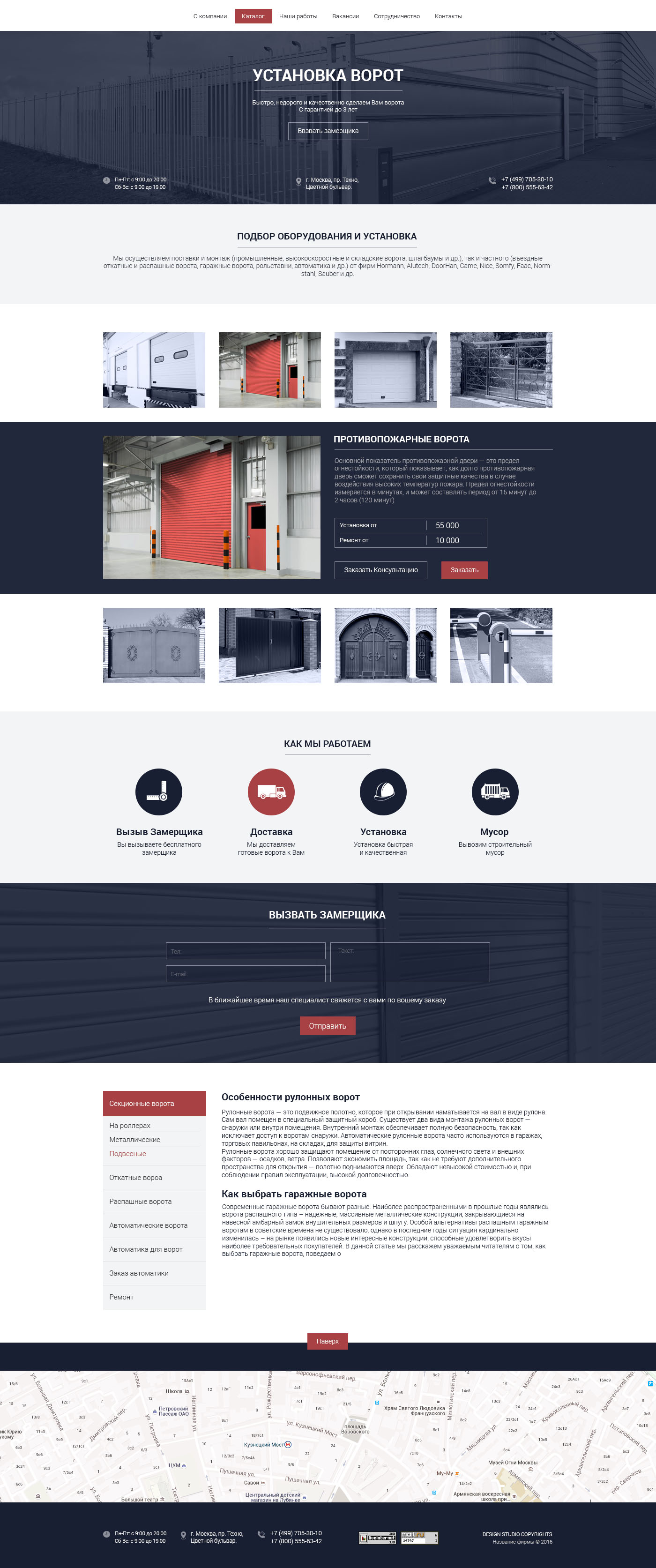 PSD исходник дизайна, используя который можно разработать лендинг или каталог по тематике: автоматические ворота и рольставни, ремонт ворот и др.