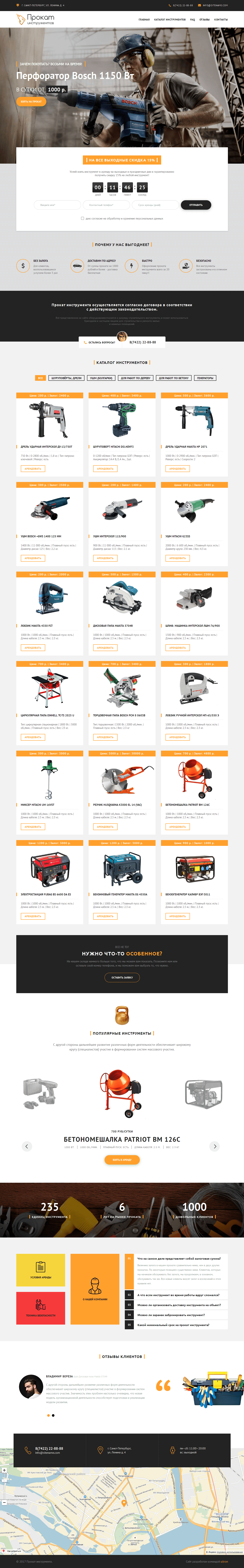 Шаблон по аренде, прокату строительного инструмента представляет из себя лендинг страницу, с профессиональным и современным дизайном, качественно выполненную верстку, тщательно проверенную на правильное отображение во всех современных браузерах и мобильных устройствах.