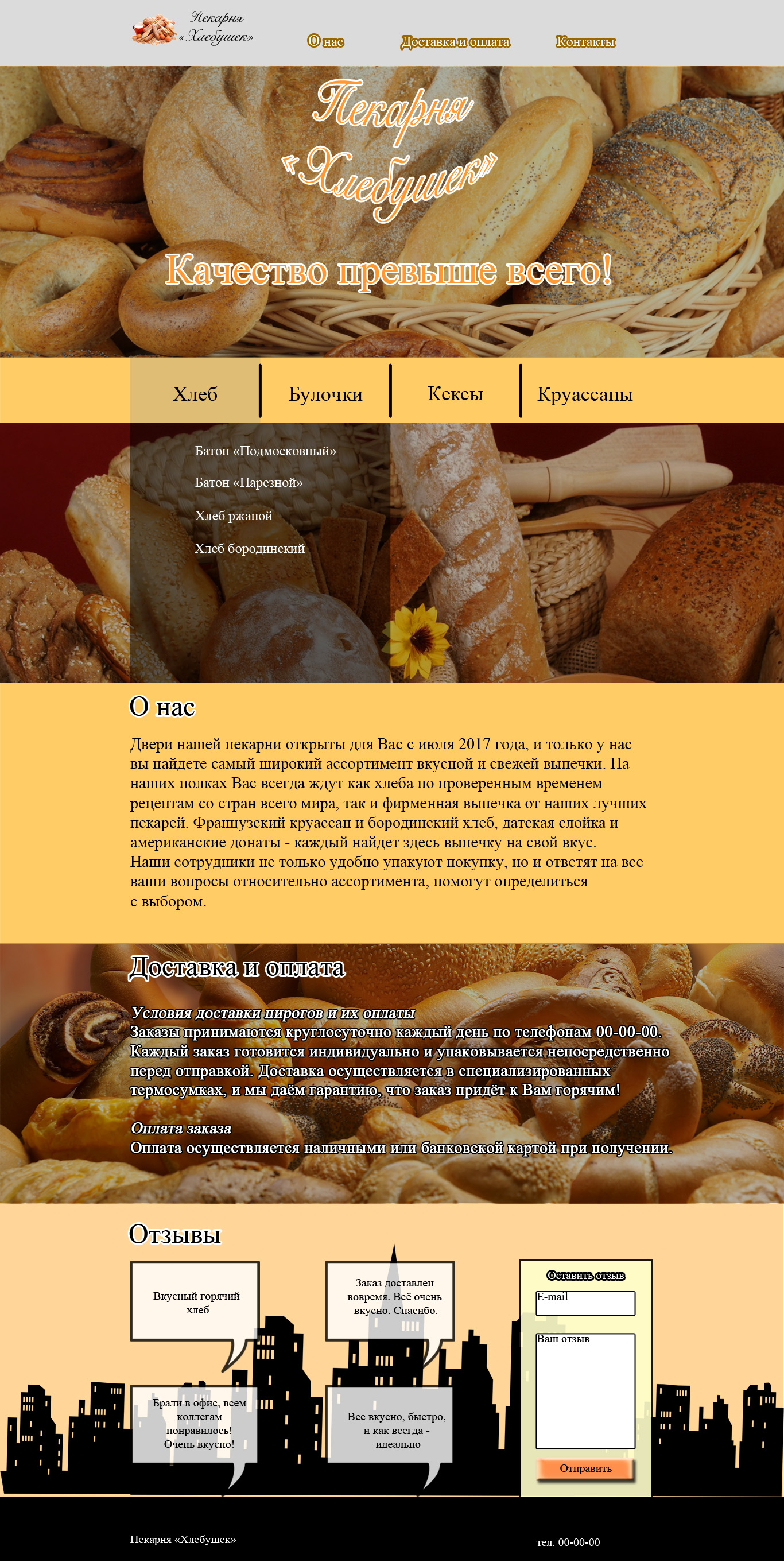 Дизайн макета подойдёт для сайта пекарни. По желанию покупателя может быть изменена тематика и цветовая гамма макета.