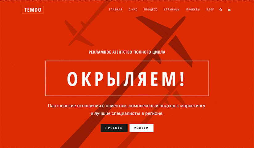 Стильный, яркий, универсальный русский шаблон WordPress для корпоративного сайта. Отлично поойдет для рекламного агентства или дизайн-студии.