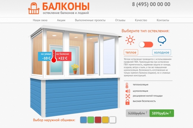 Готовый сайт Landing Page по отделке и остеклению балконов и лоджий.