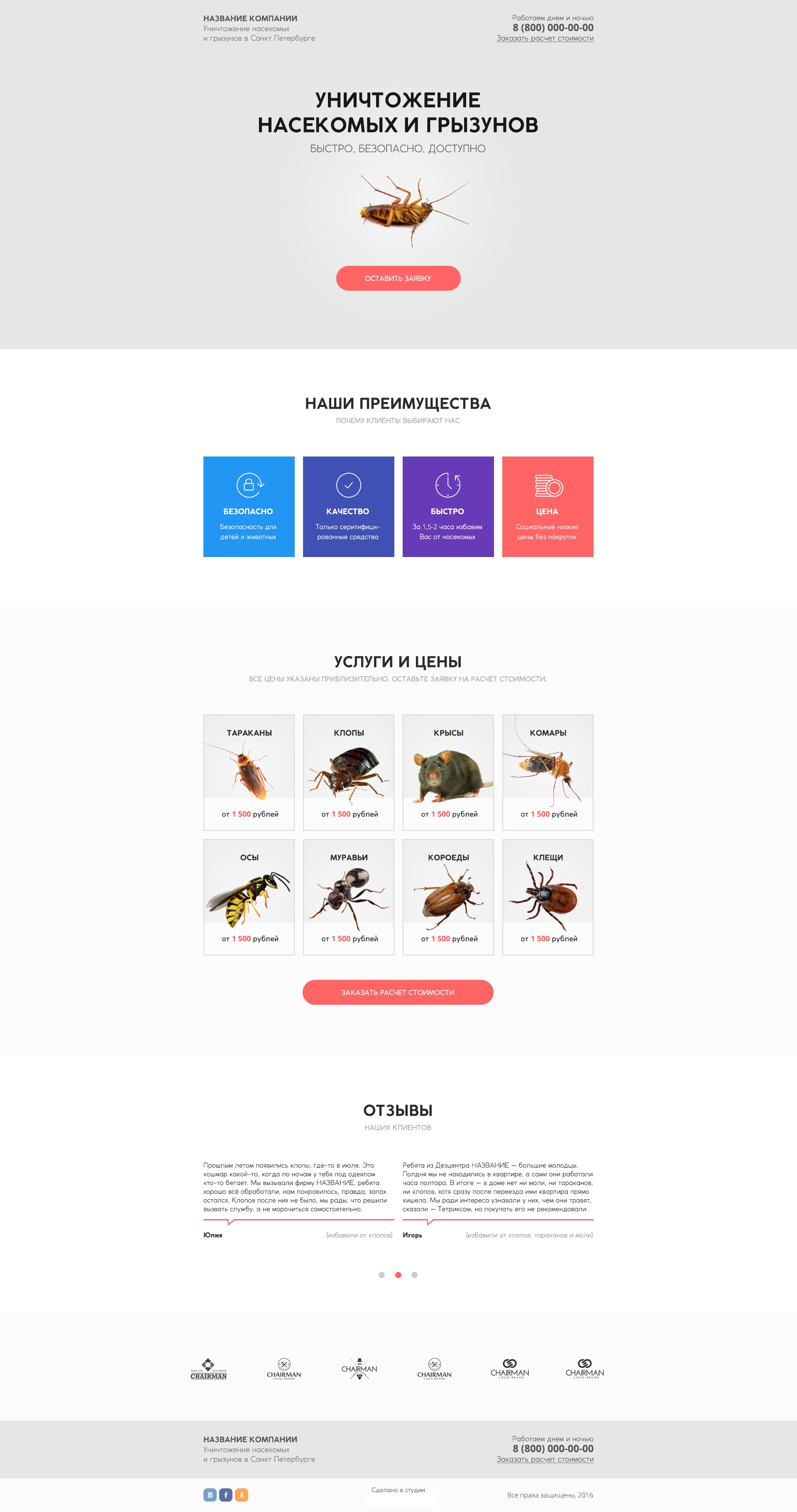 Готовый Лендинг-пейдж "Уничтожение насекомых и грызунов"