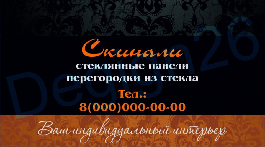 Дизайн визитки производителей скинали, стеклянных панелей номер поставим ваш, голубой текст удалим