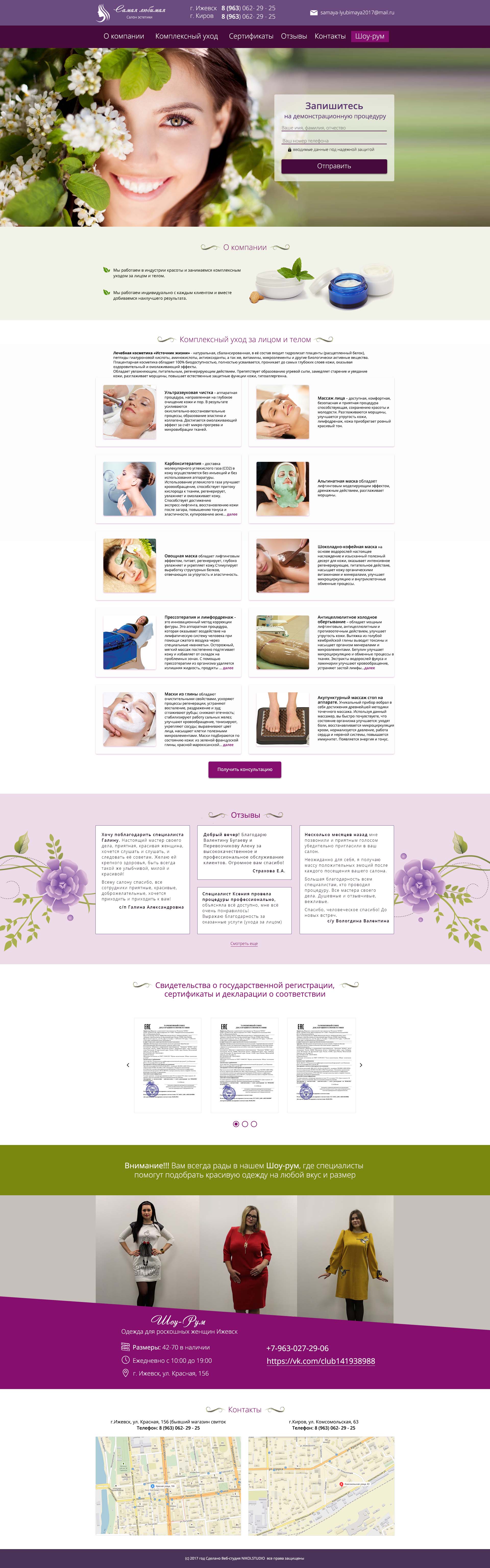 Здравствуйте! Представляю лендинг для салона красоты+шоу-рум по продаже одежды для крупных женщин.
