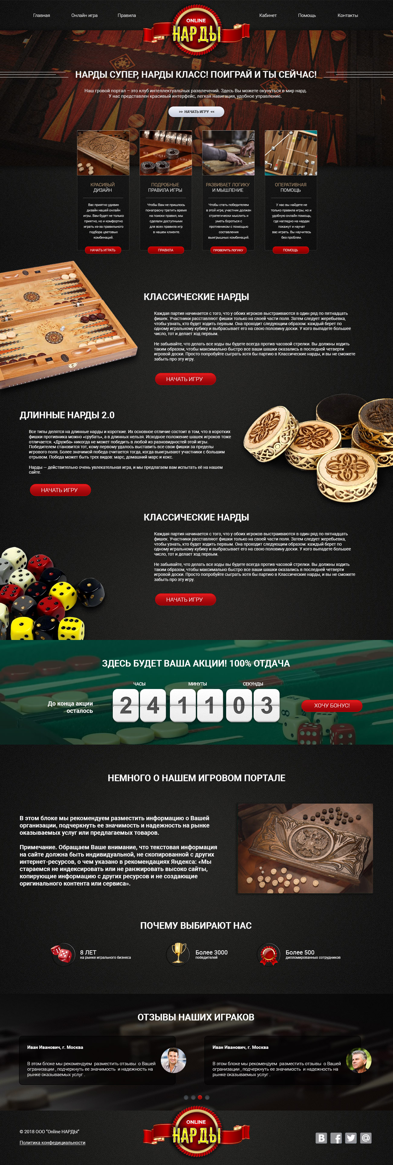 Landing page "Нарды", формат psd. Шаблон подойдет для магазина по продаже нард, либо для игры online.