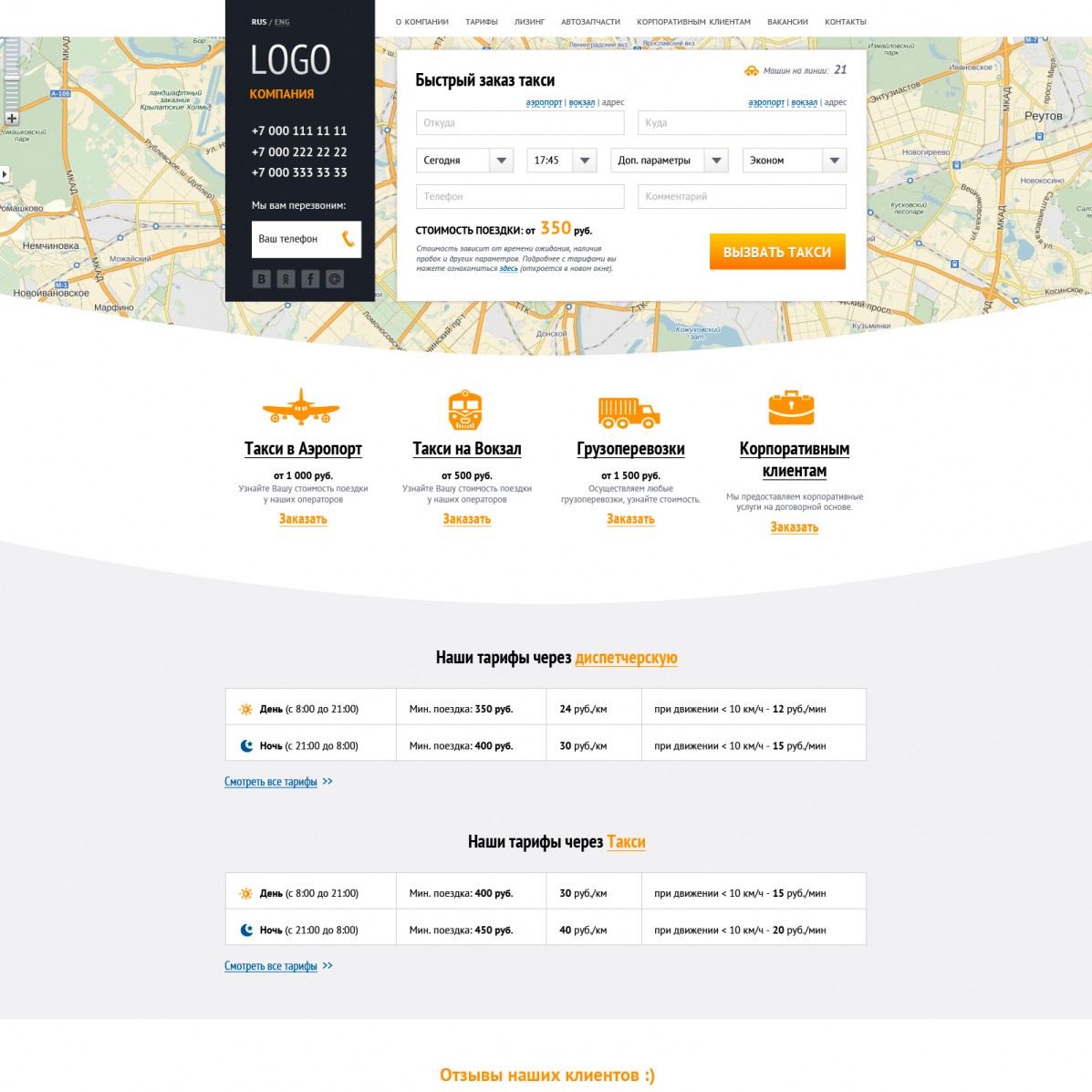 Небольшой лендинг для службы такси. Быстрая форма заказа. Минимум контента и графики, быстро, понятно, доступно. Иконки и фото представлены в качестве примера и не входят в Лот.