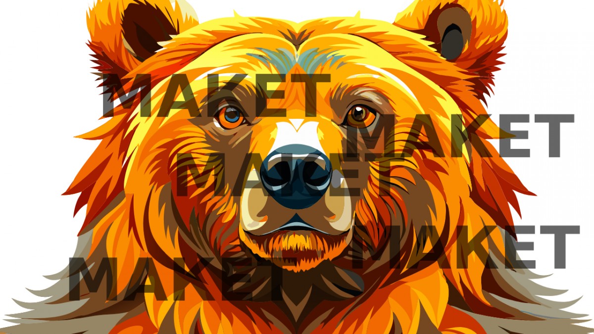 Изображение медведя, который смотрит в камеру. Подойдет для всех видов рекламы (плакаты, баннеры, сайты и т.п.). На фото представлен макет в растре. Чтобы купить изображение медведя в векторе - нажмите на кнопку "Отправить запрос на покупку" и я сразу вышлю вам файл в векторном формате SVG. Картинка создана при помощи ИИ.