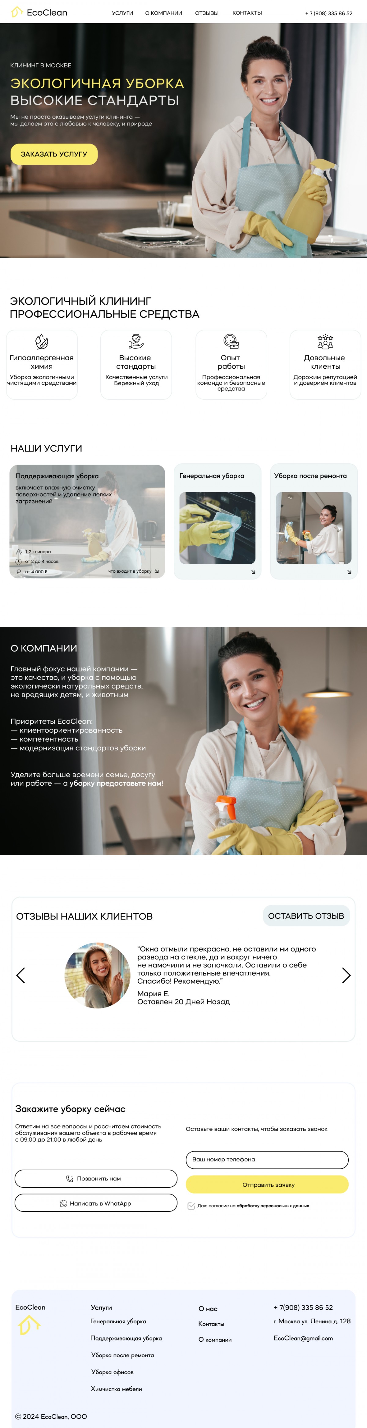 Макет включает в себя все необходимые страницы: главную с яркими изображениями ваших услуг, раздел "О компании" для создания доверия, а также страницу с контактами для быстрого обращения клиентов.