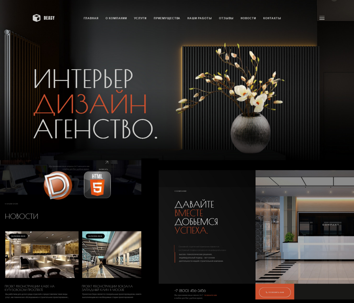 Шаблон лендинг компании дизайн интерьера Dle 17.2 предназначен для создания современных одно-страничных сайтов. Он обладает следующими ключевыми характеристиками: