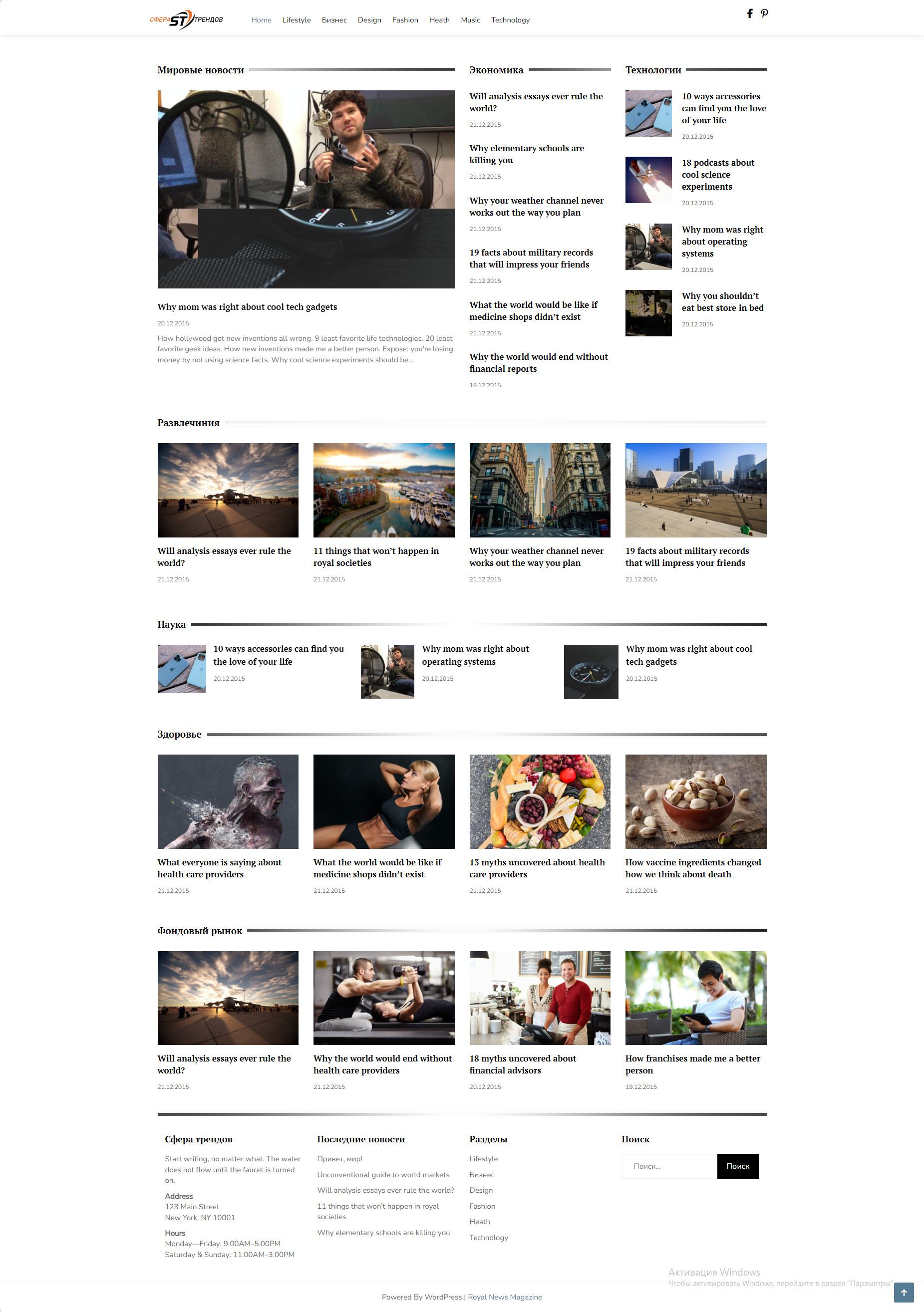 Быстрая и функциональная тема News-Royal спаециально создана для новостных сайтов и блогов.